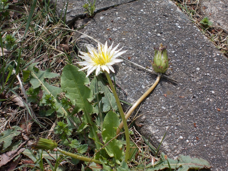 公民館の芝生広場でシロバナタンポポ(白花蒲公英)を見つけたました?