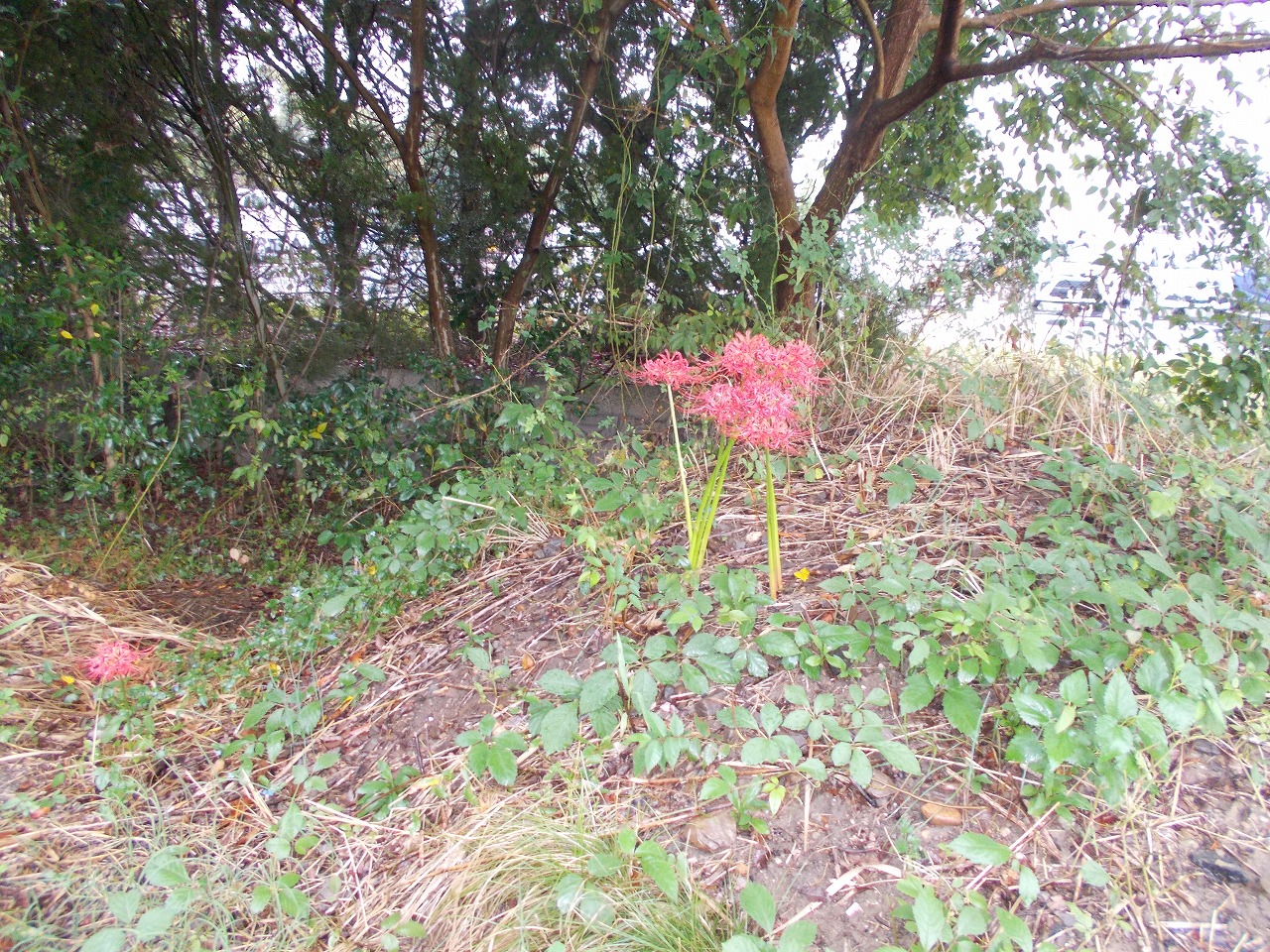 南側駐車場の奥に”ひっそり”と彼岸花が咲いていました。