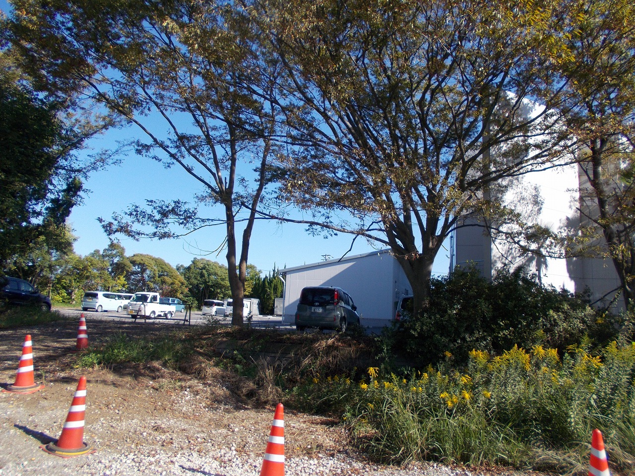 西側駐車場への北側通路 通行止め規制に伴い 南側駐車場から西側駐車場に出入りする角の垣根を 伐採していただきました