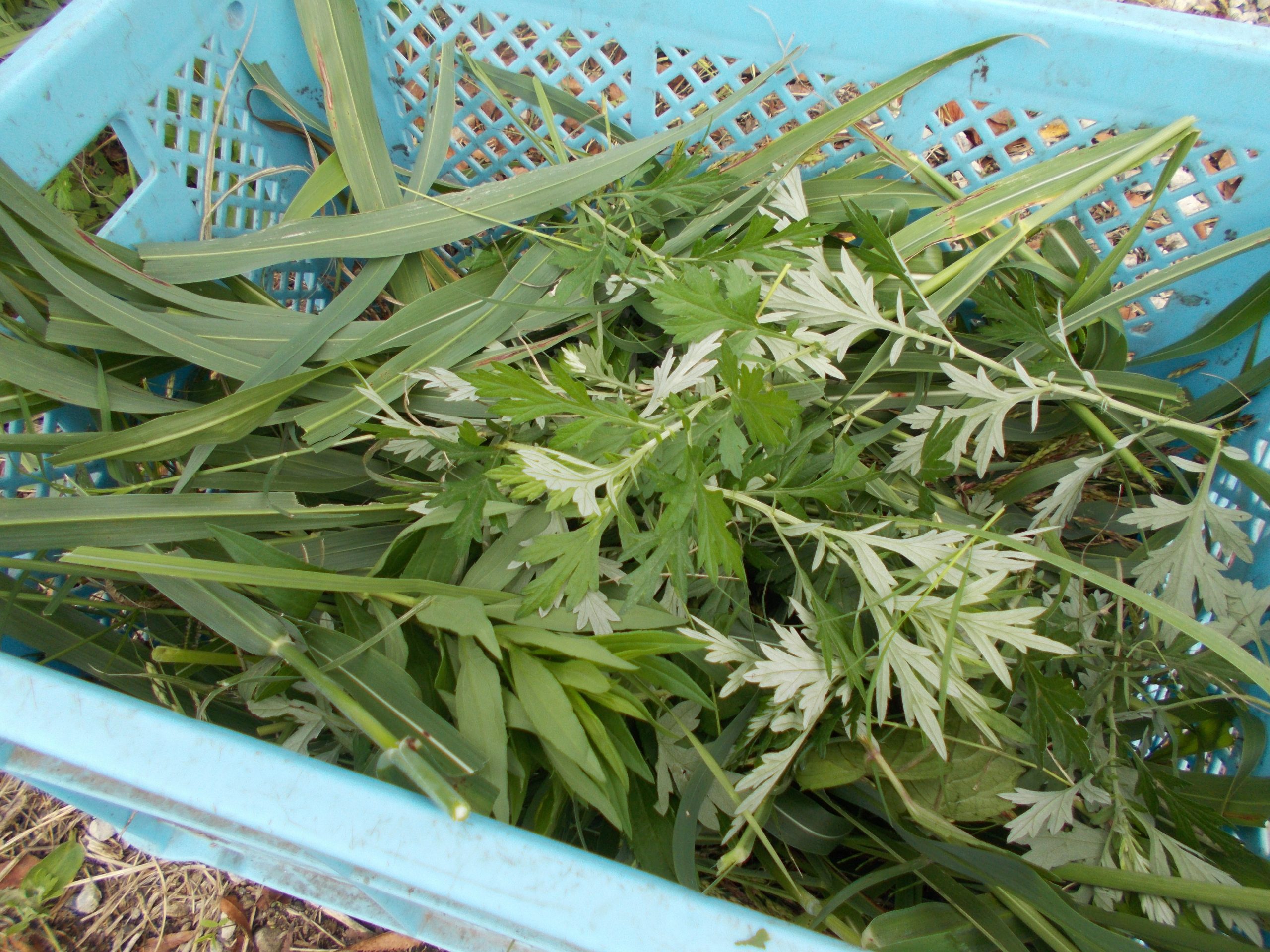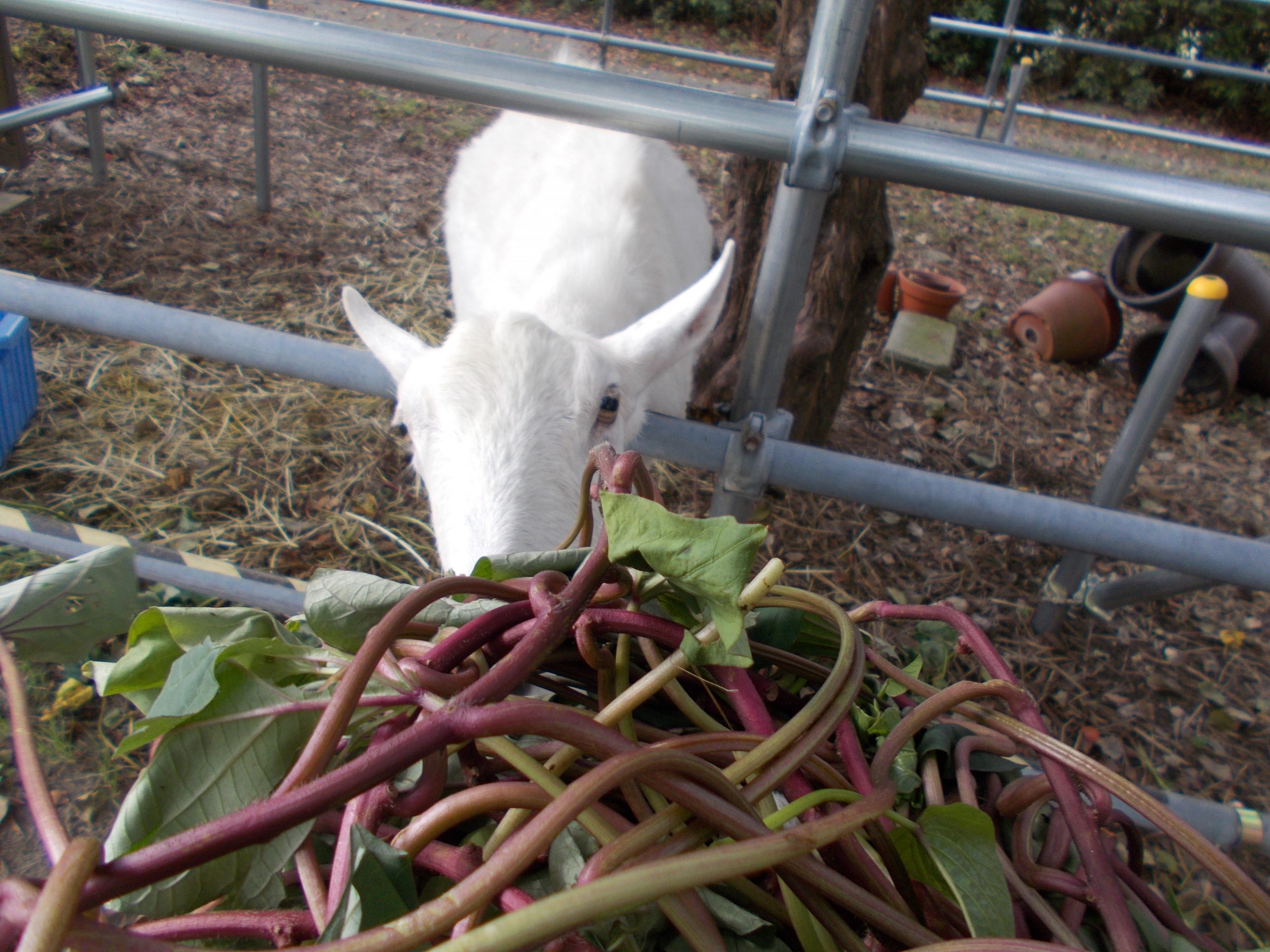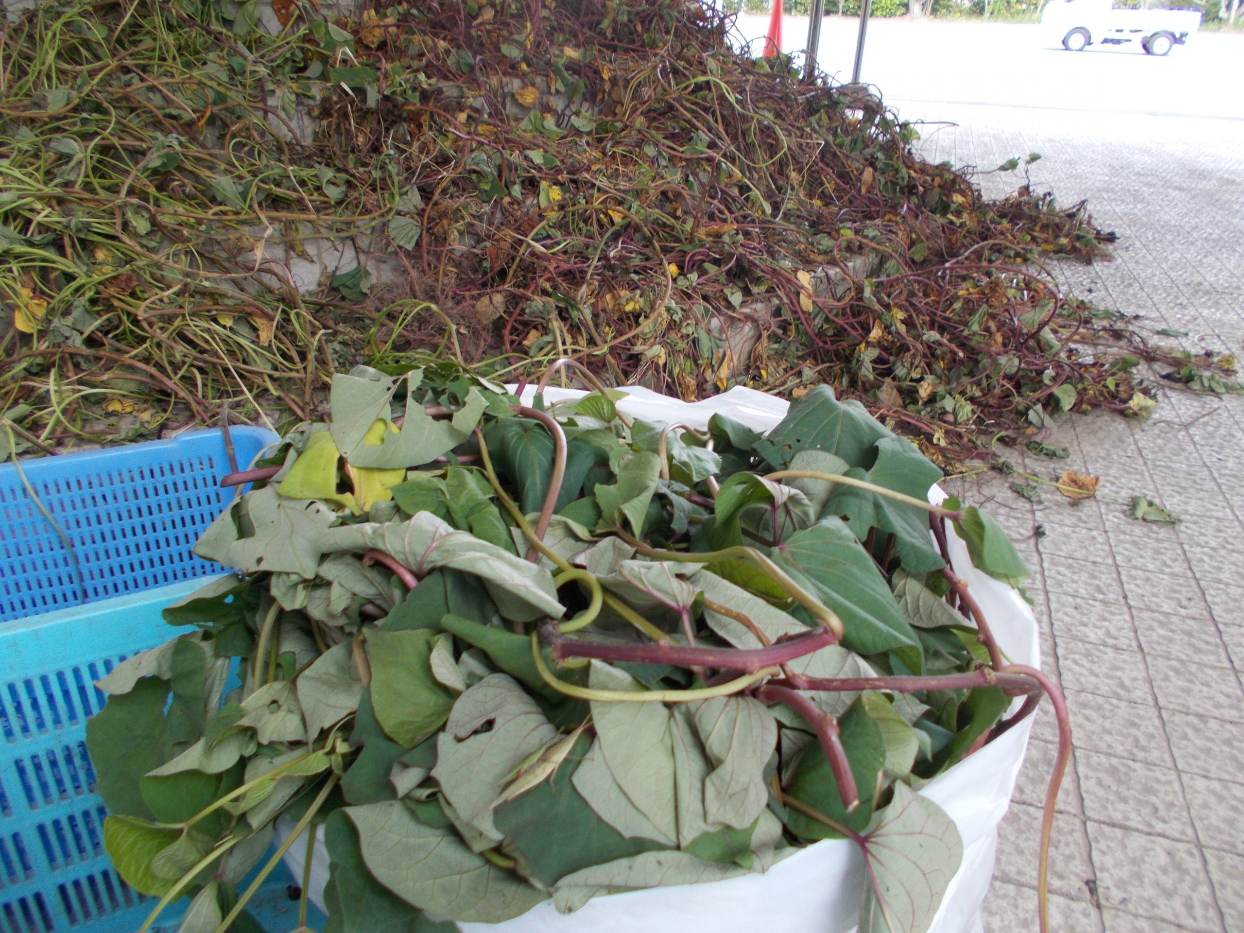 ヤギのあおい君への差し入れ、大量の芋づる!!!!!