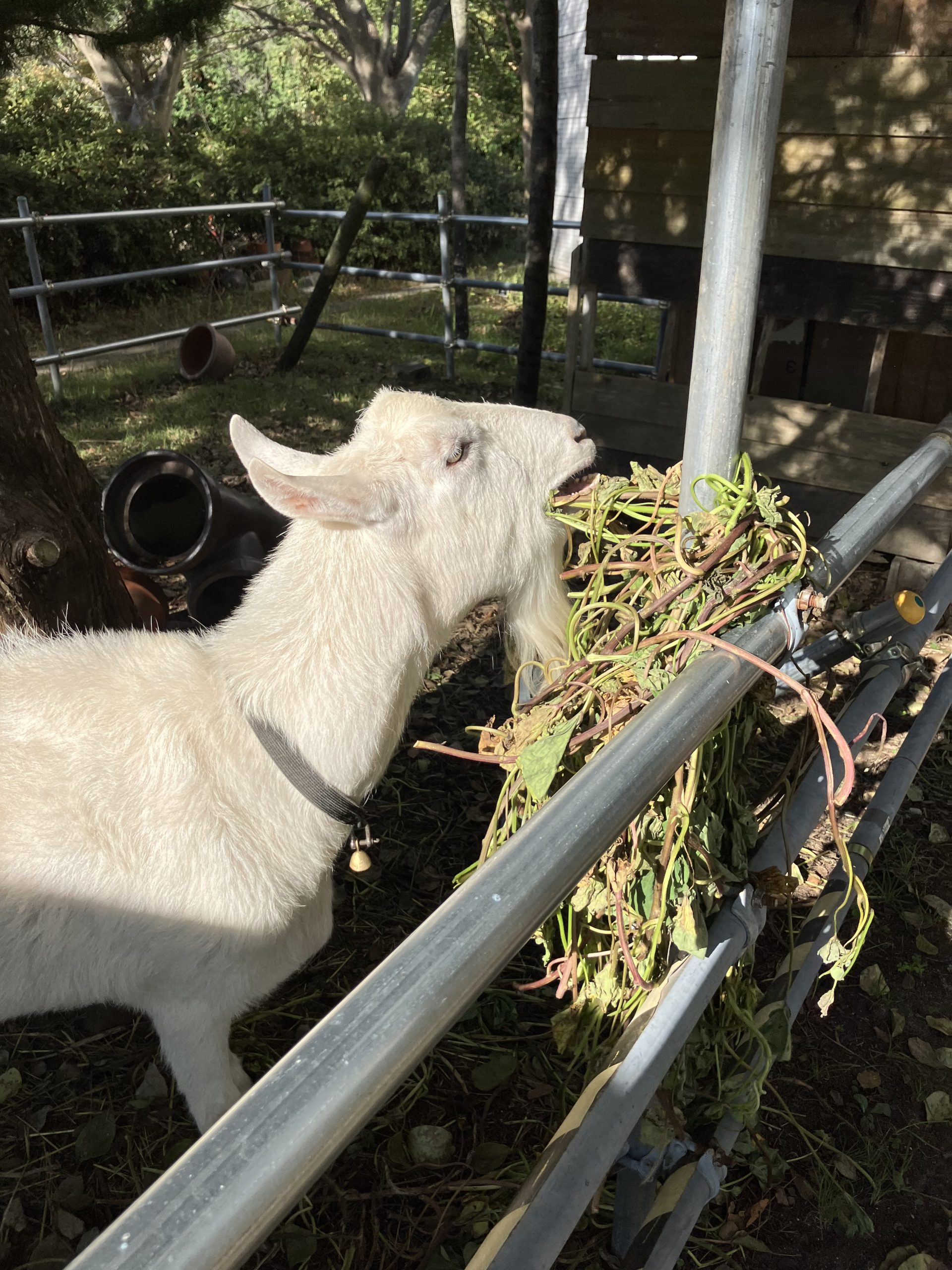 ヤギセンター長のあおい君は、秋の味覚をしっかり堪能しております。