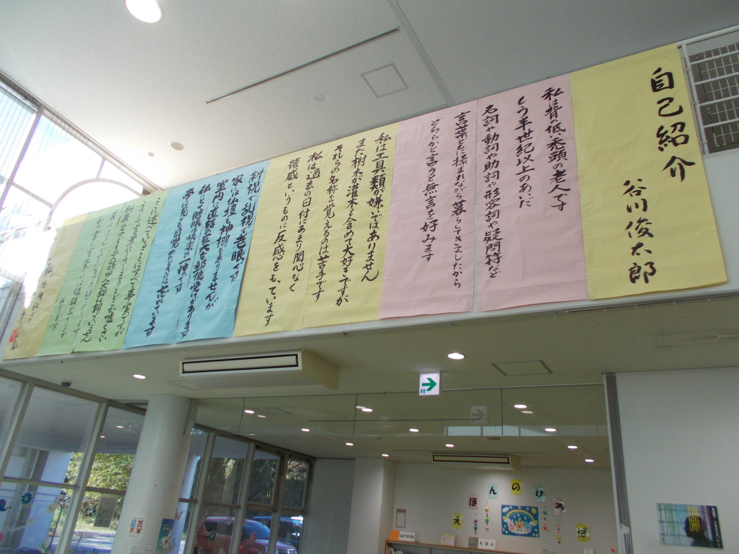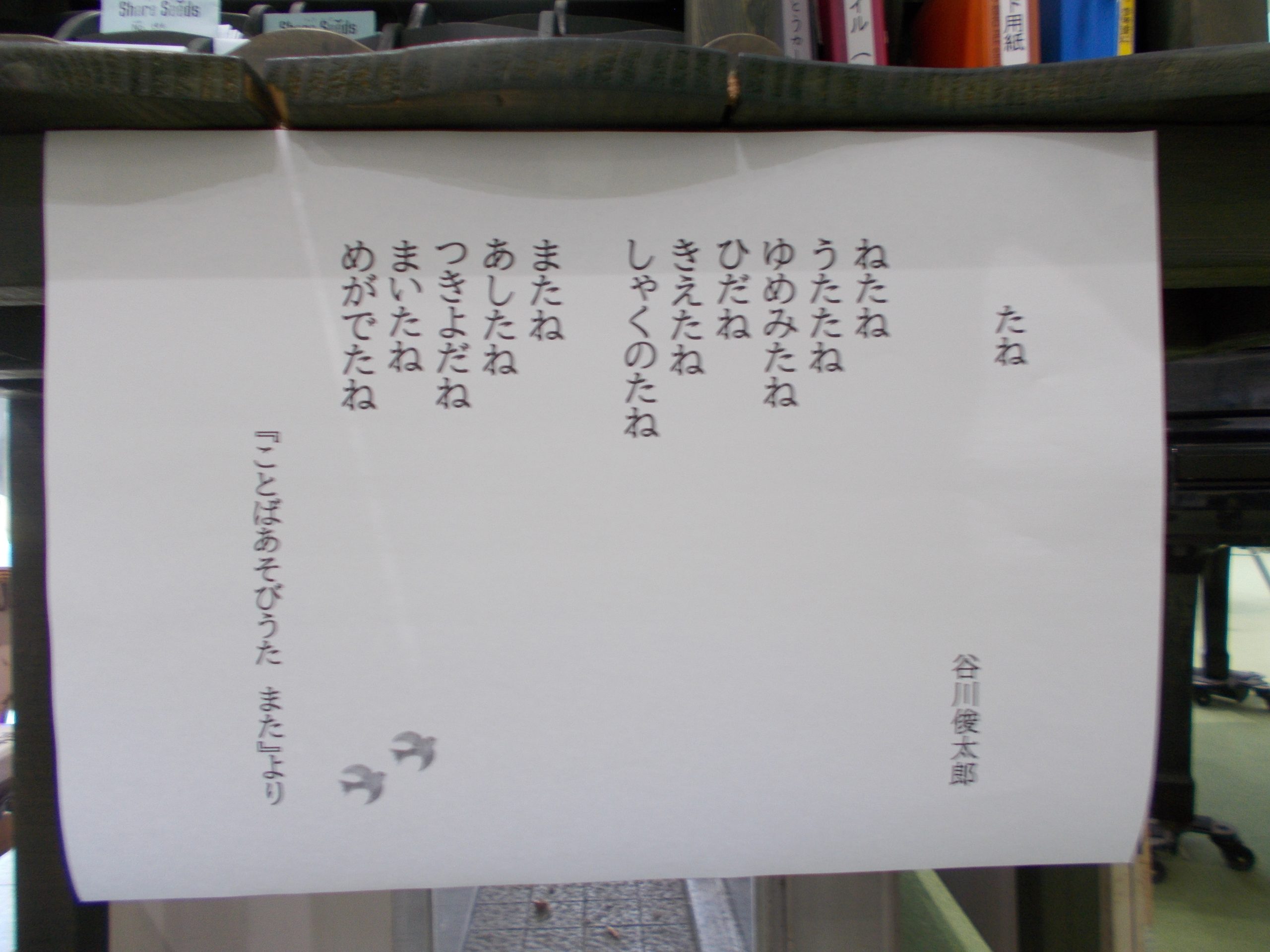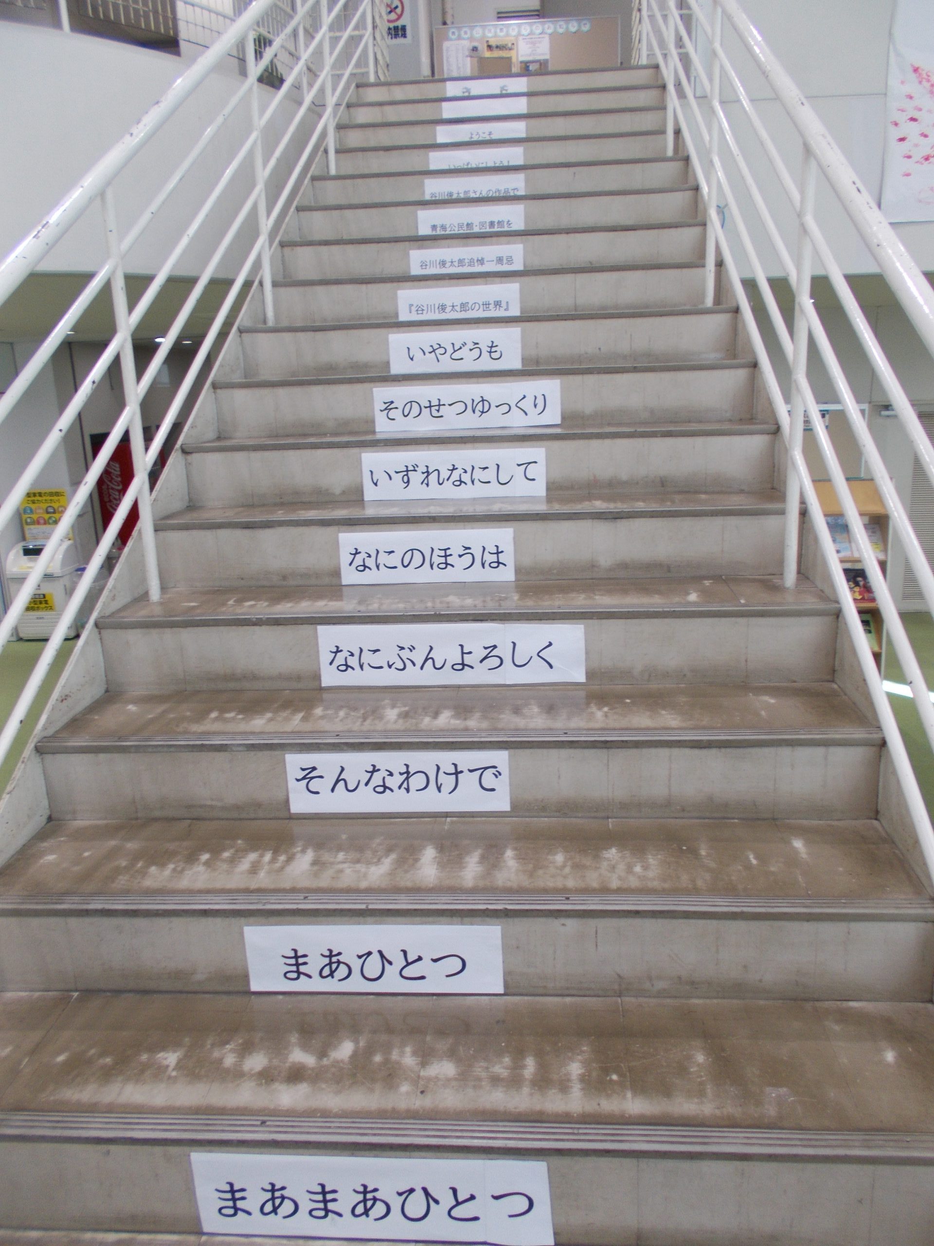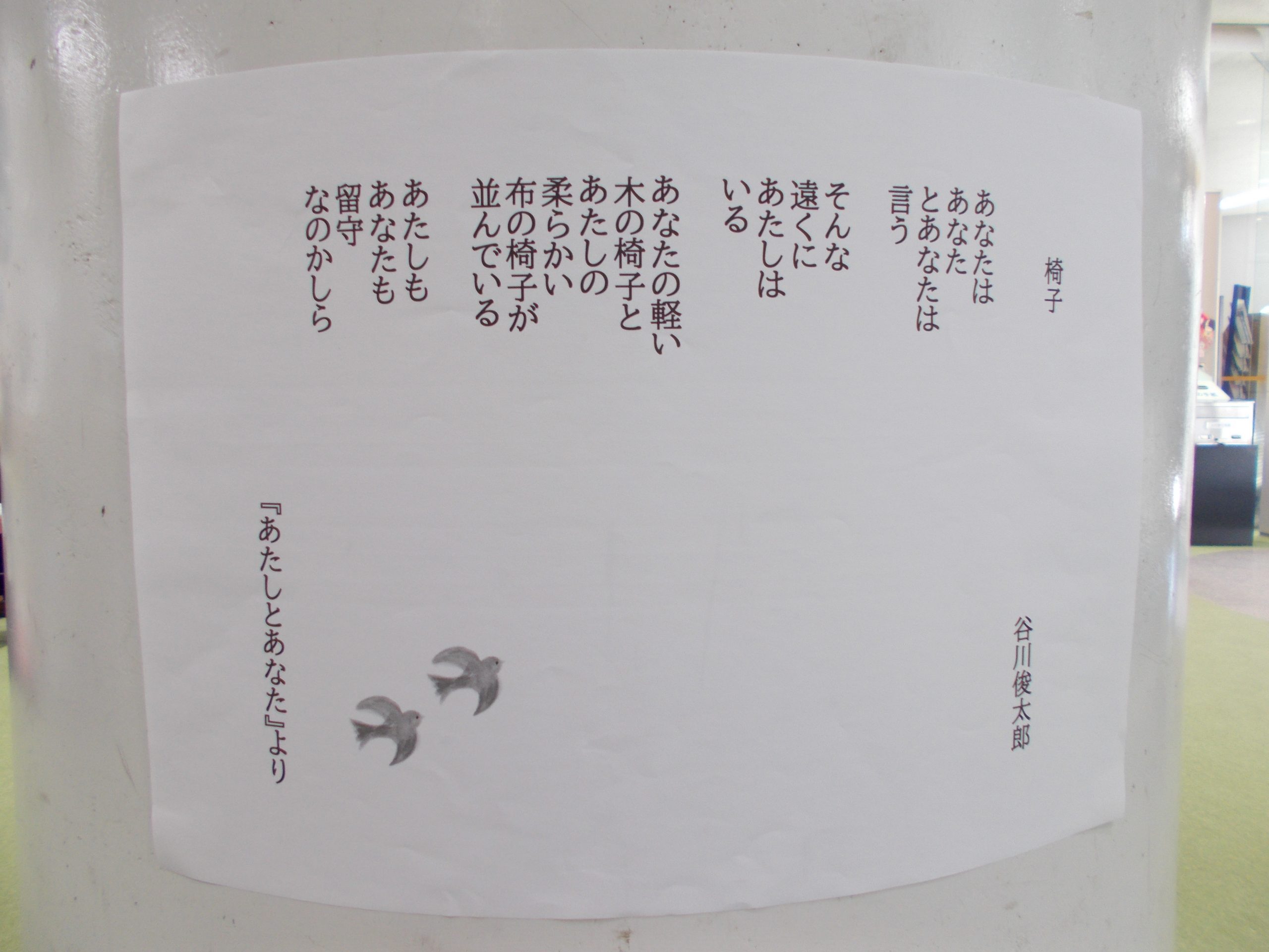 「青海公民館・図書館を谷川俊太郎さんの作品でいっぱいにしよう!」のサブタイトルそのままに、館内いたるところに素敵な作品が飾られ、差し込まれています!ヽ(^o^)丿