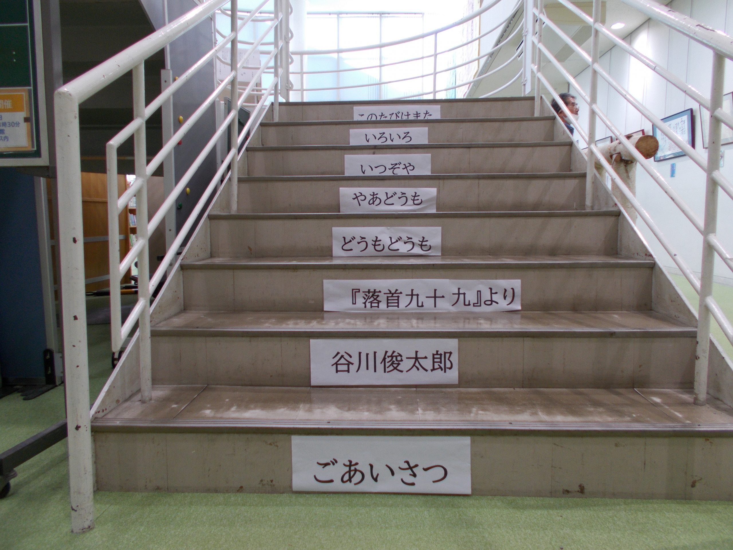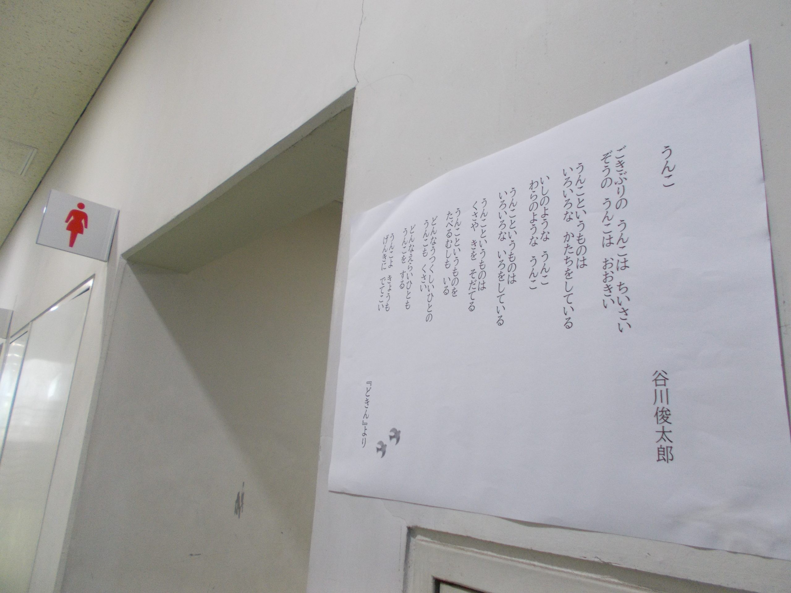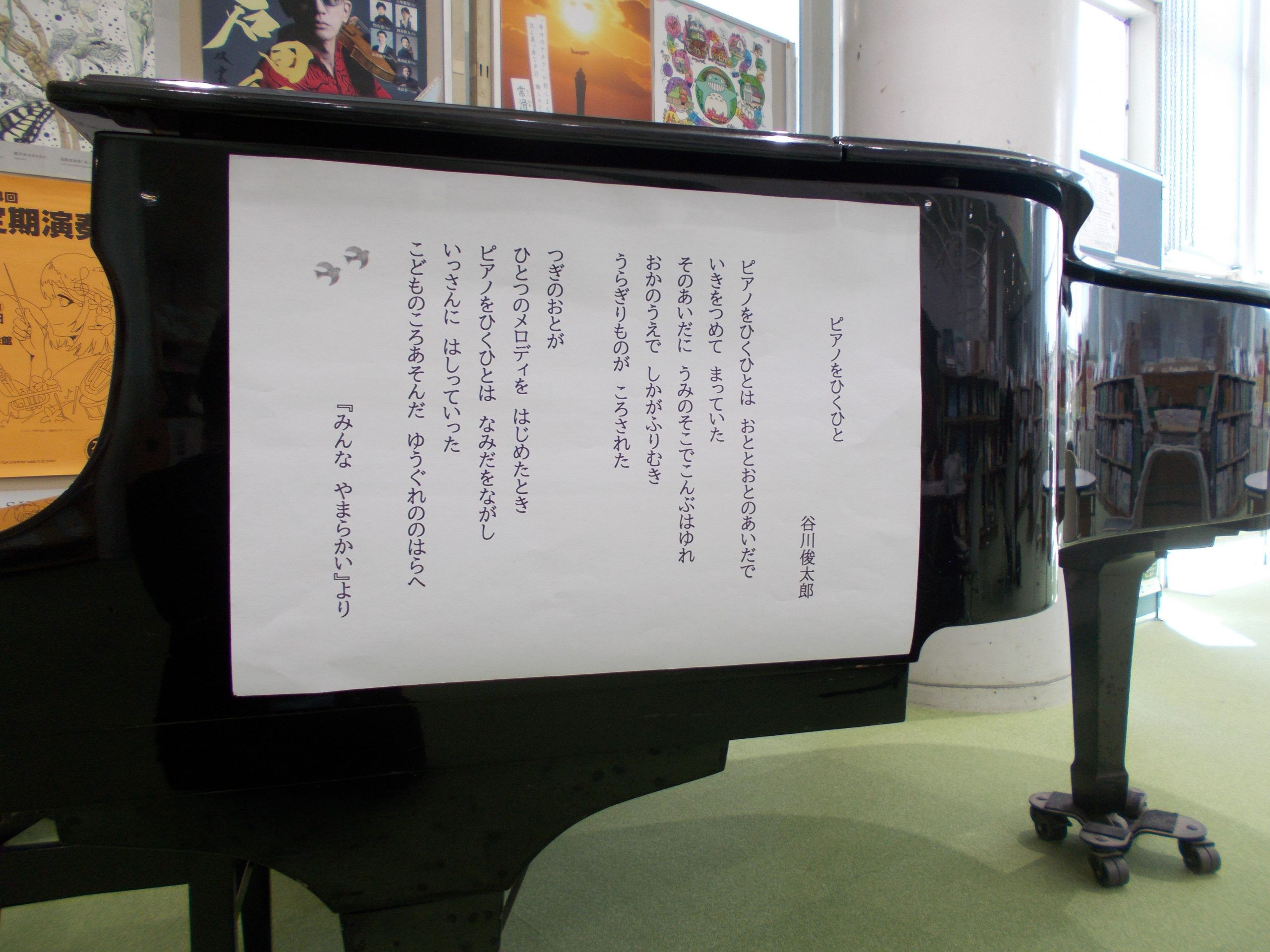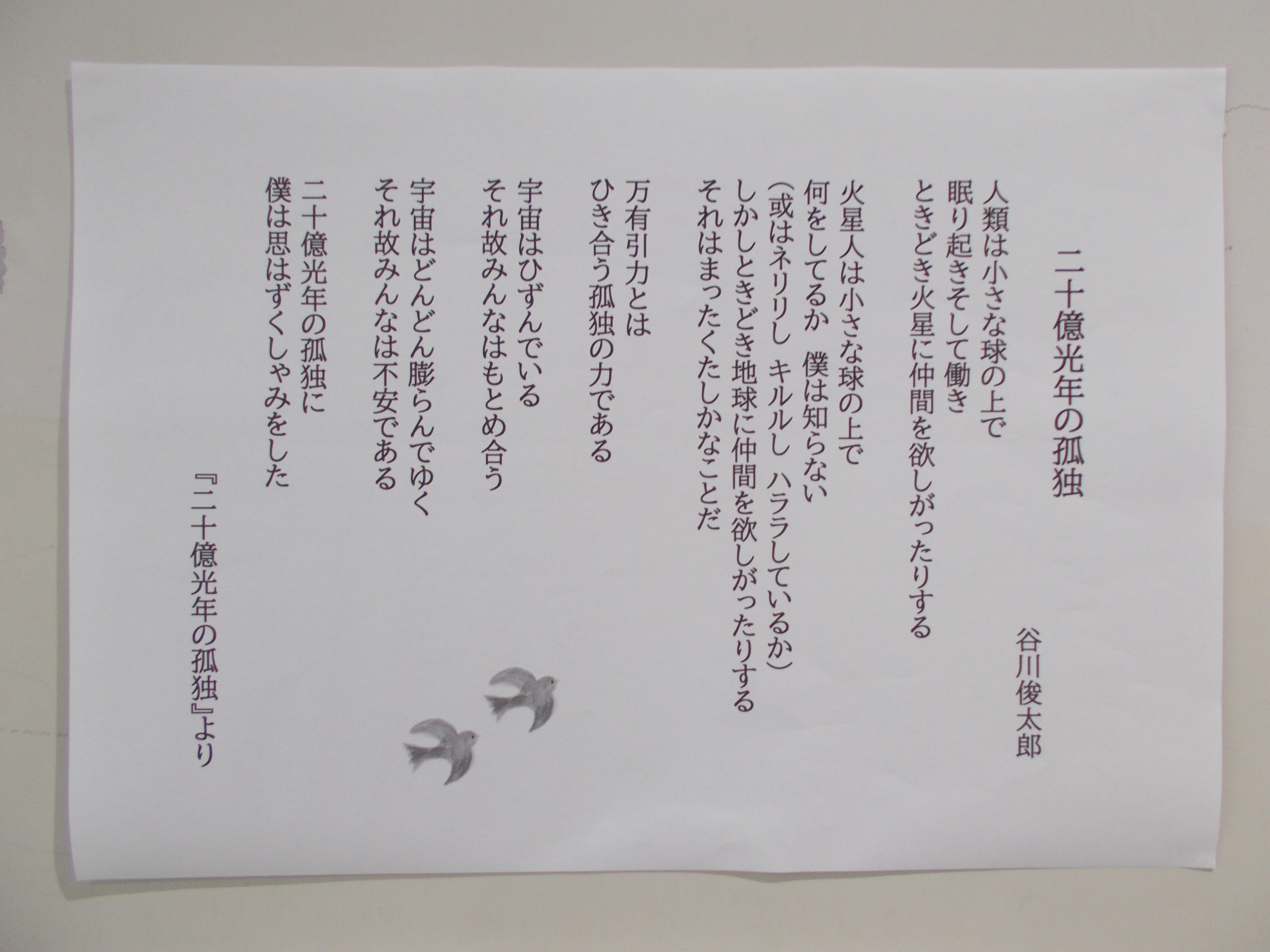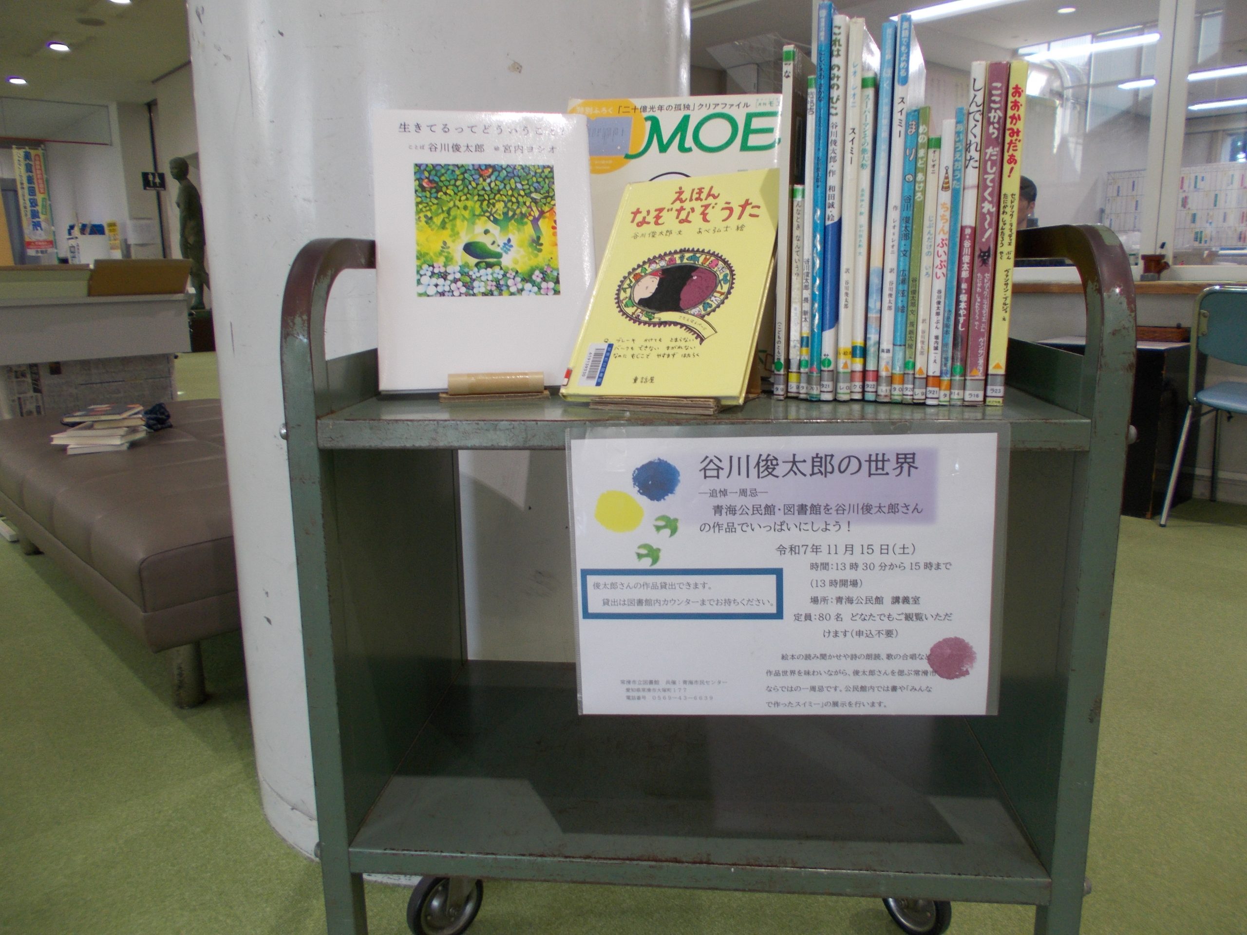 「青海公民館・図書館を谷川俊太郎さんの作品でいっぱいにしよう!」のサブタイトルそのままに、館内いたるところに素敵な作品が飾られ、差し込まれています!ヽ(^o^)丿