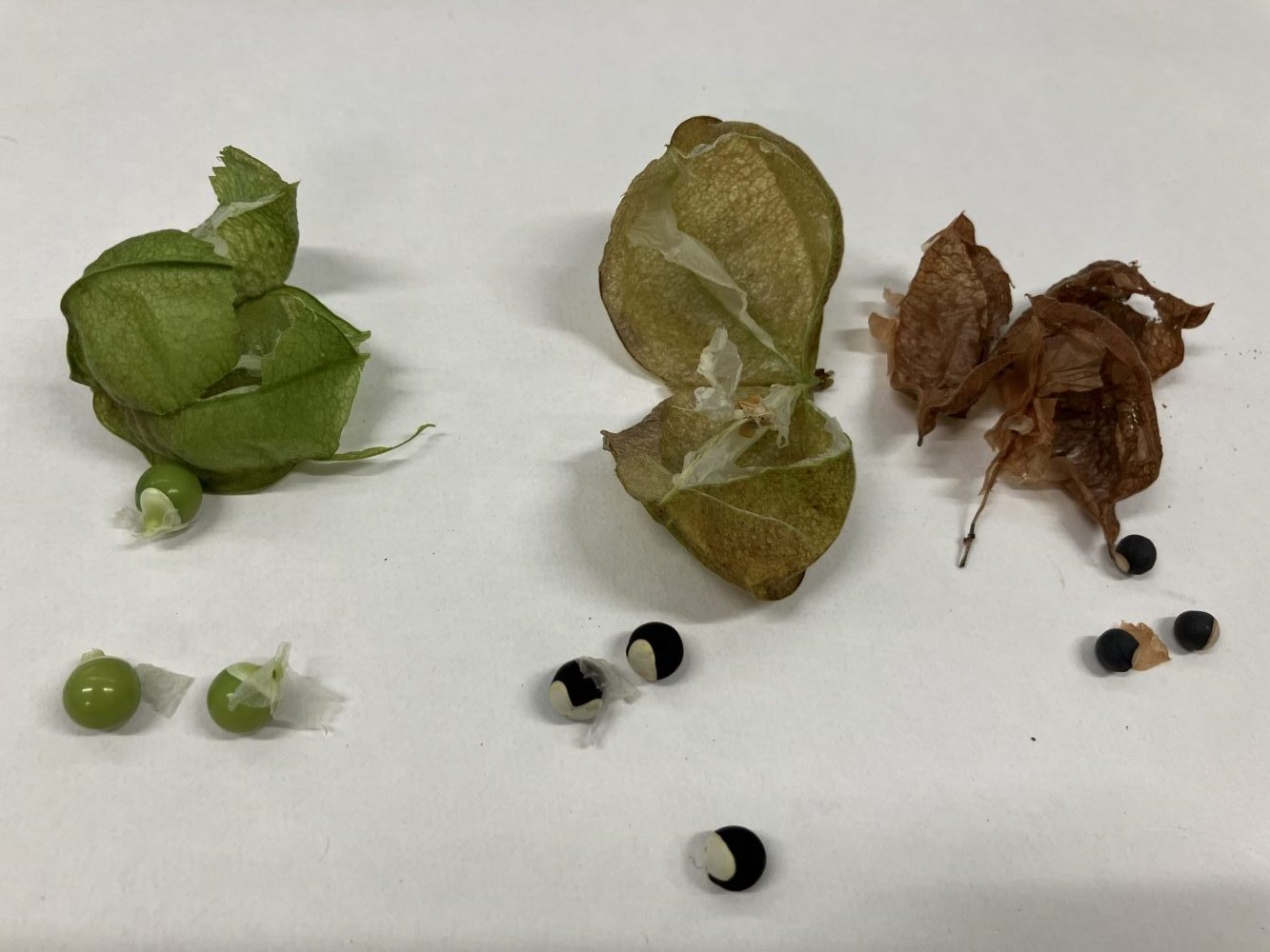 熟しているたねは黒色をしています。来年まくと、きっとよく育ちますよ。ぜひ育ててみていただければと思います。