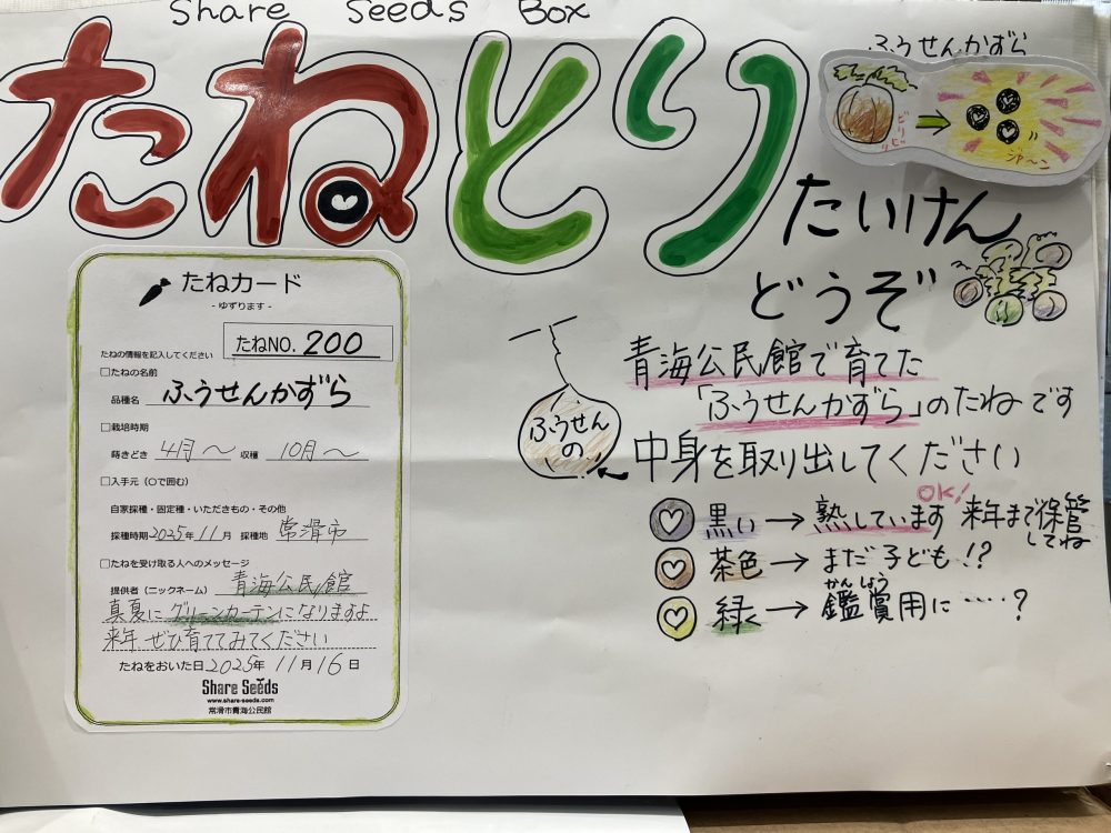 シェアシーズボックスのおとなりに「たねとり体験コーナー」を作ってみました。