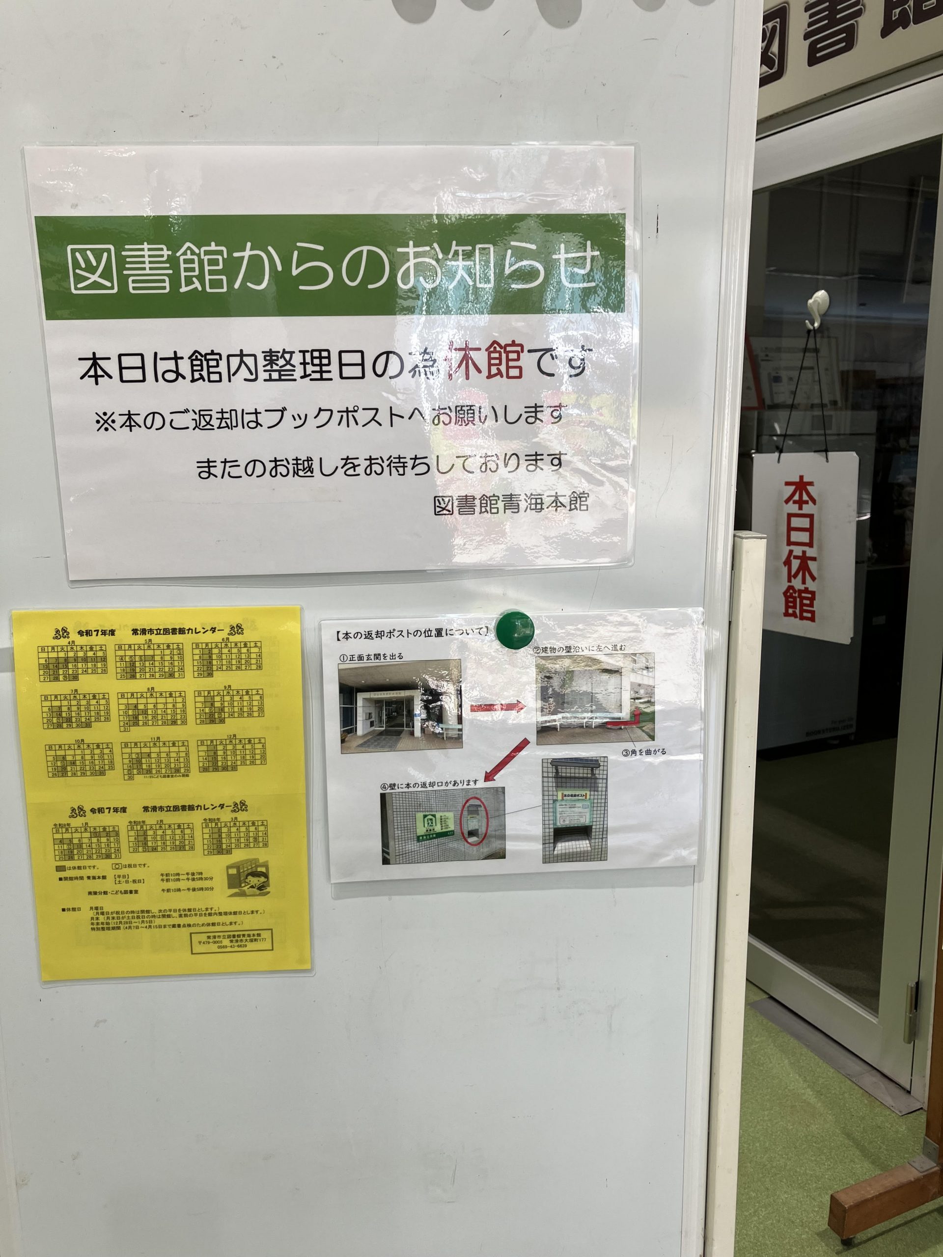 本日11月28日(金)は図書館館内整理のため休館日となっております。 本のご返却は、ブックポストをご利用ください。