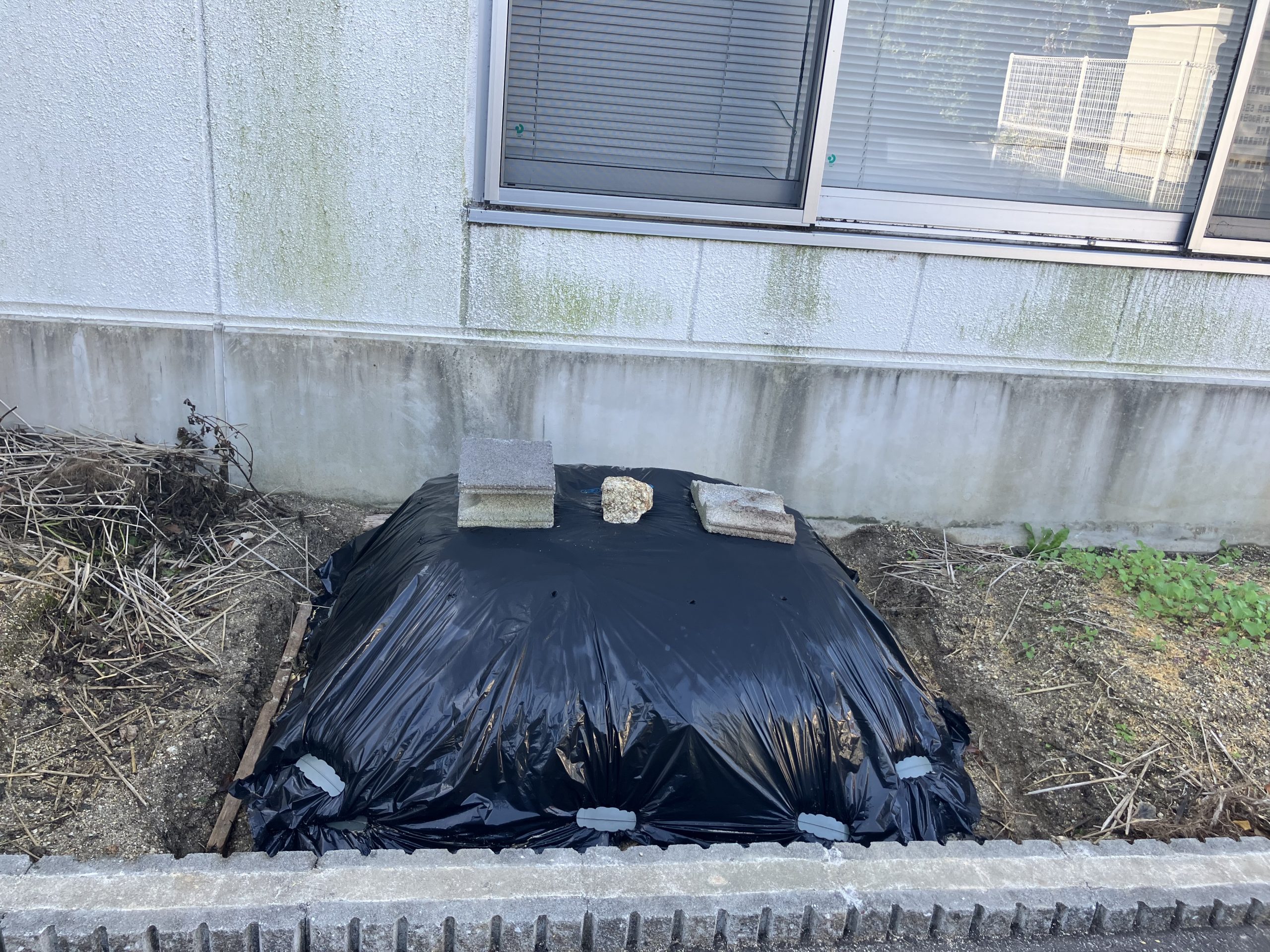 先日予告しました「食べられる公民館」の土づくり、セット完了しました!