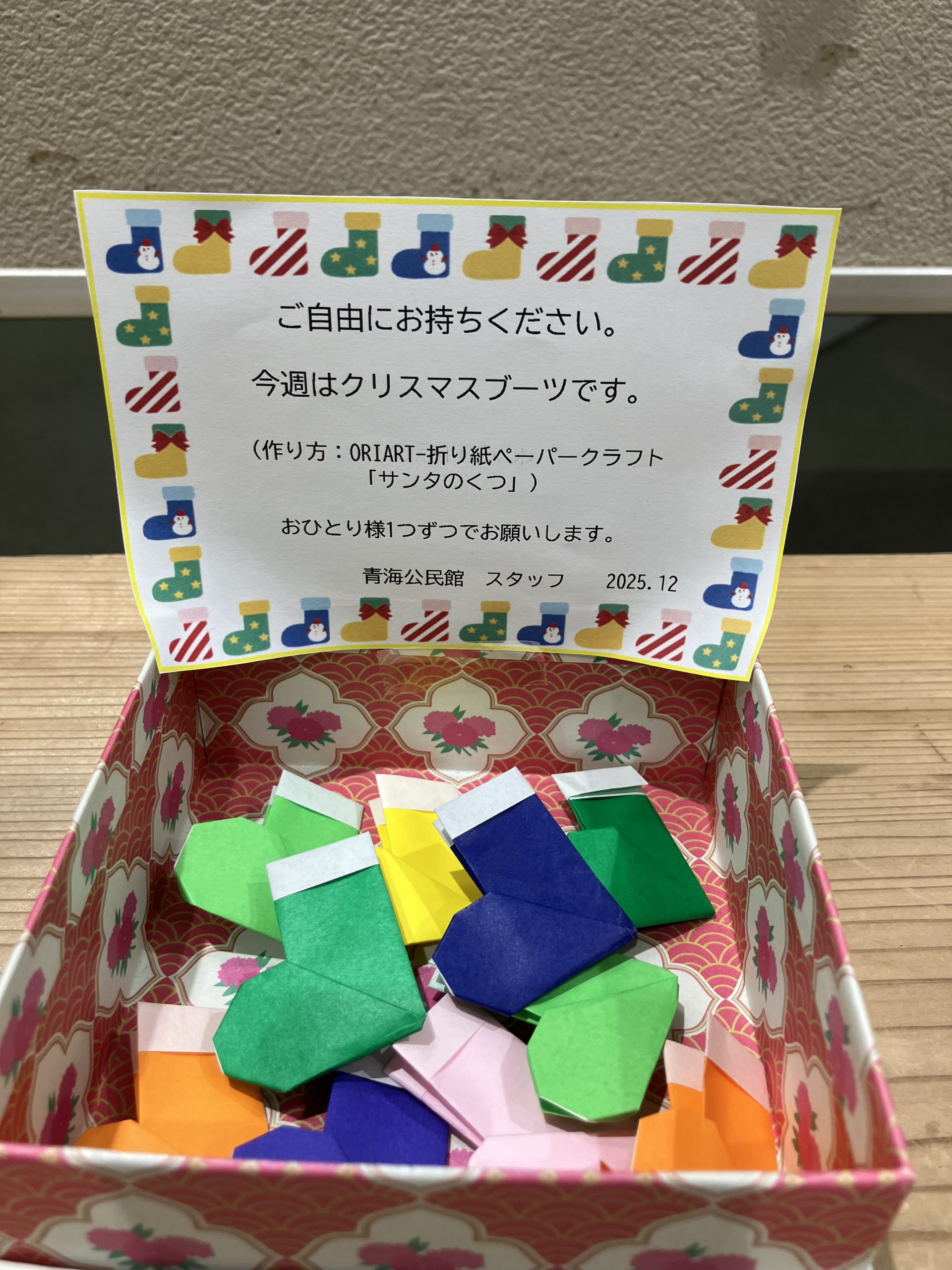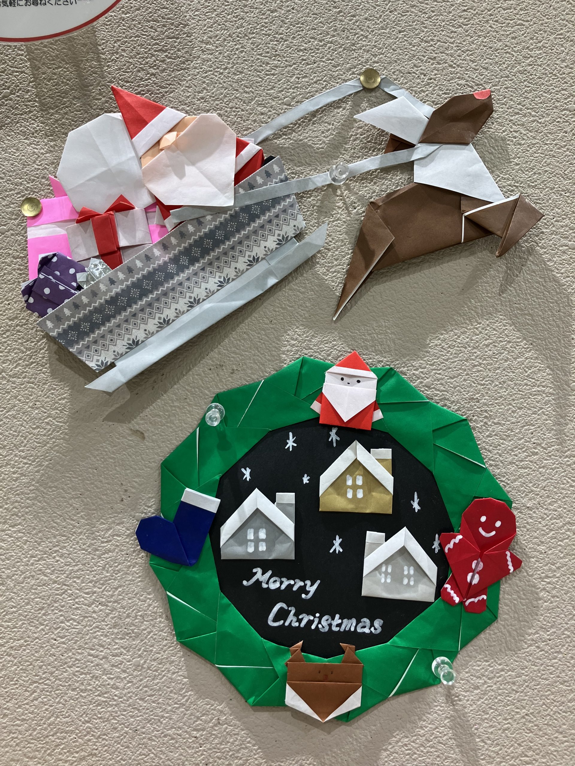今月のおもてなしクラフトは週替わりです 折紙リースのパーツを4種類ご用意いたしました ジャーン! 来週は何かなぁ~ お楽しみに(*^-^*)