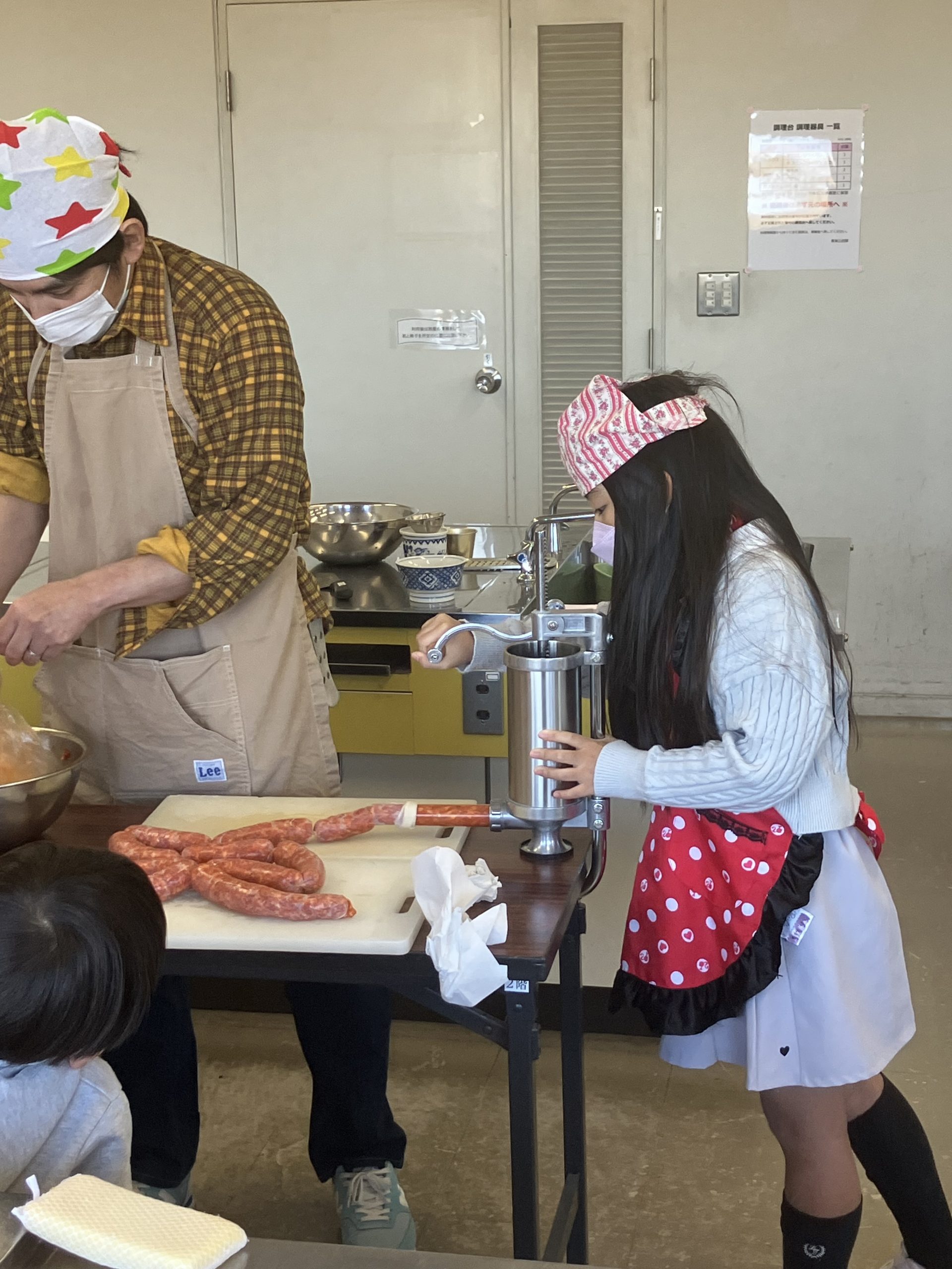 公民館ソーセージ作りに6組の方ご参加いただきました。