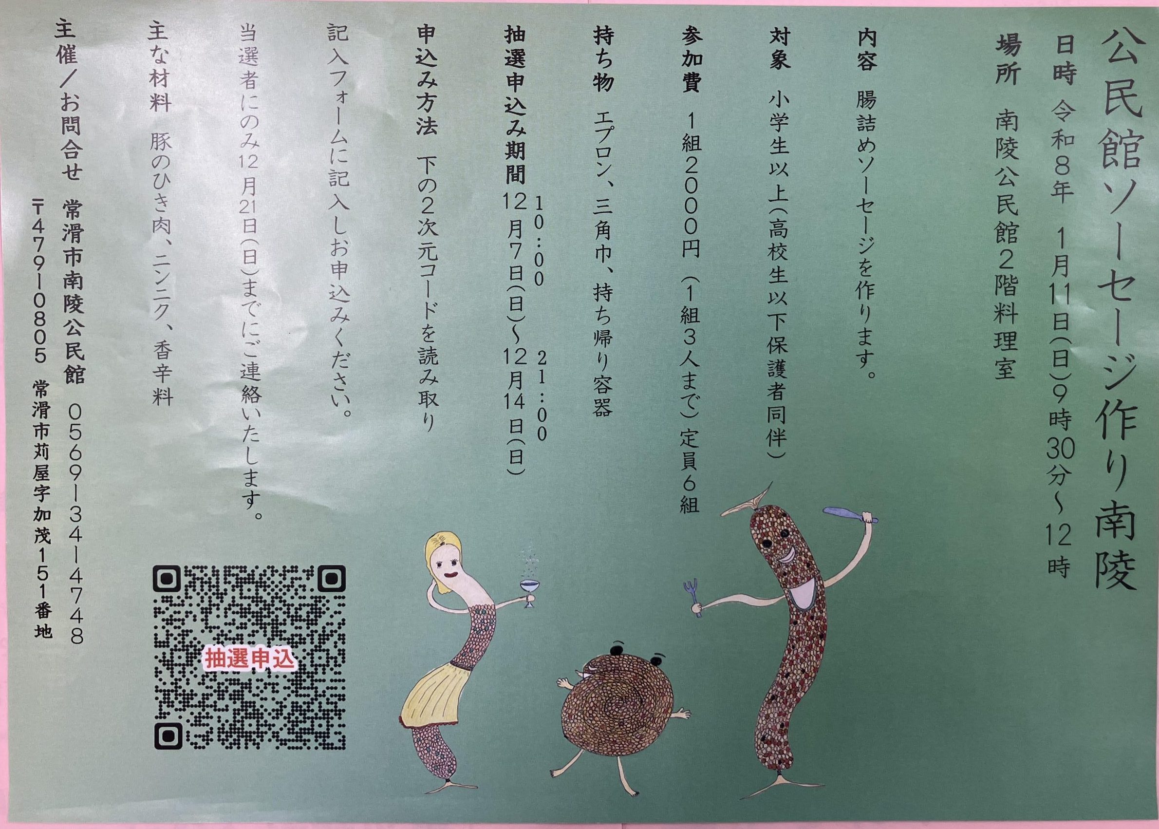 次回の公民館ソーセージ作りは、南陵公民館で1月11日(日)です。