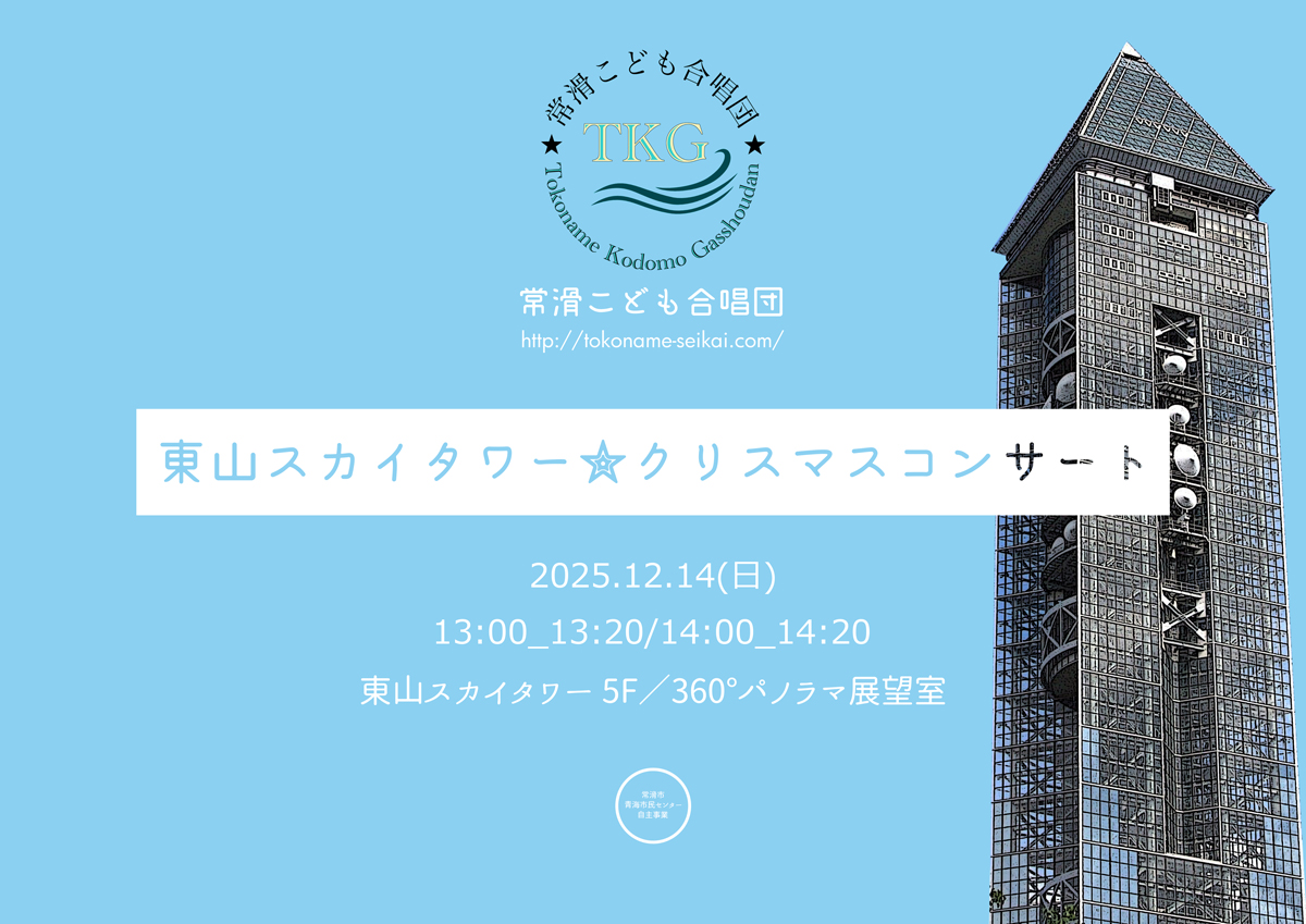 明日、12/14(日)に常滑こども合唱団のクリスマスコンサートが名古屋市の東山スカイタワーで開催されます。