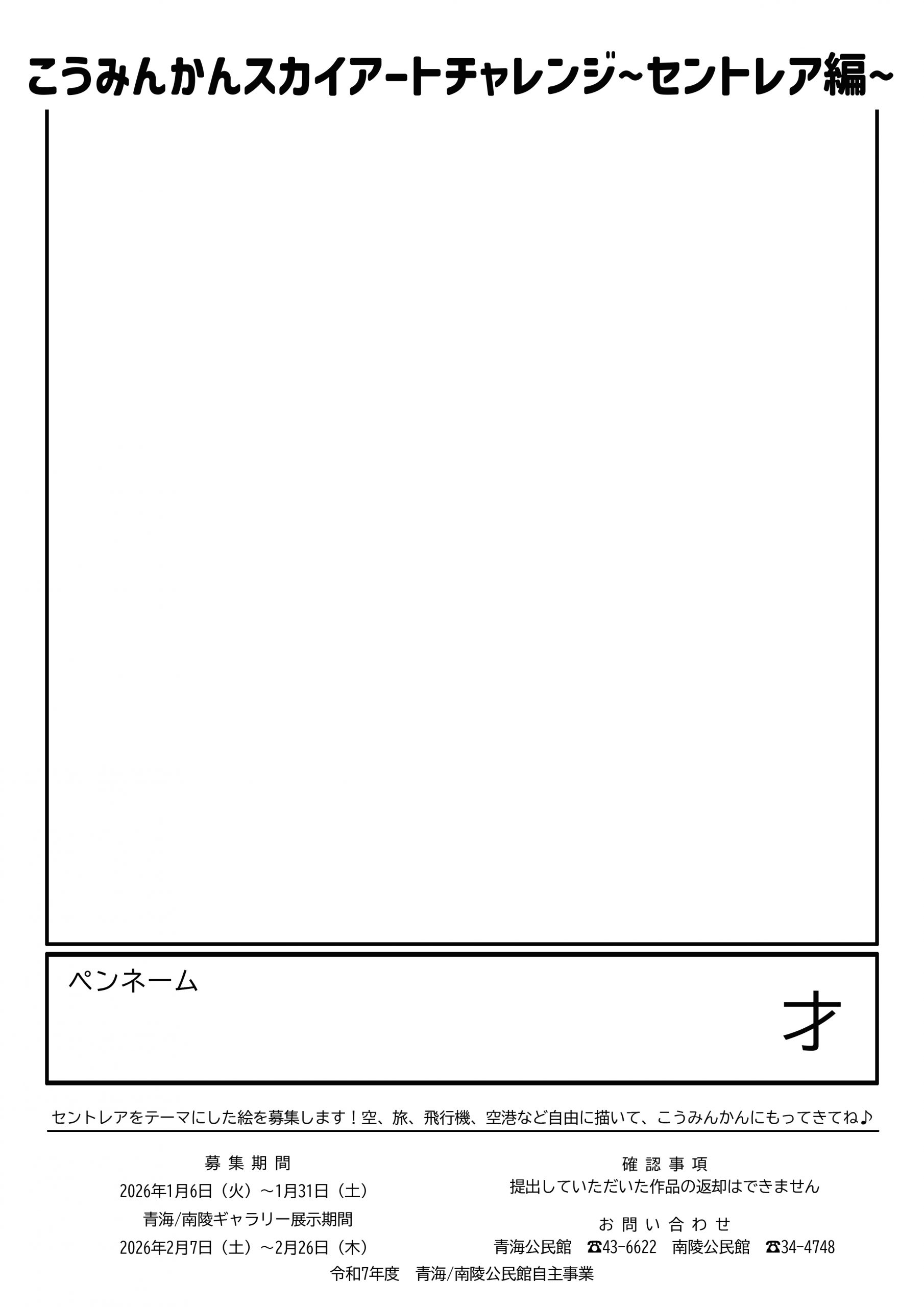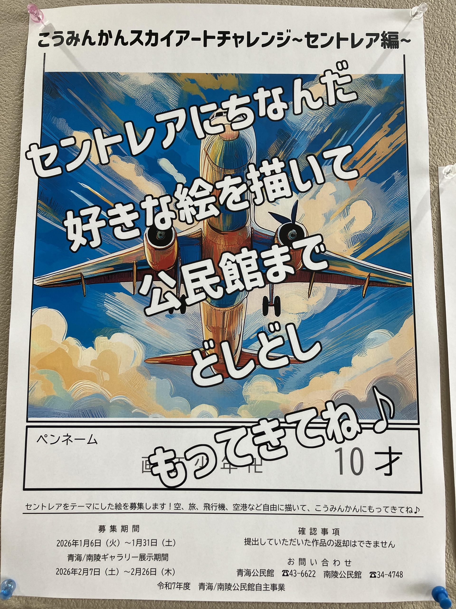 青海公民館では、そんなセントレアをテーマにした絵を募集しています!