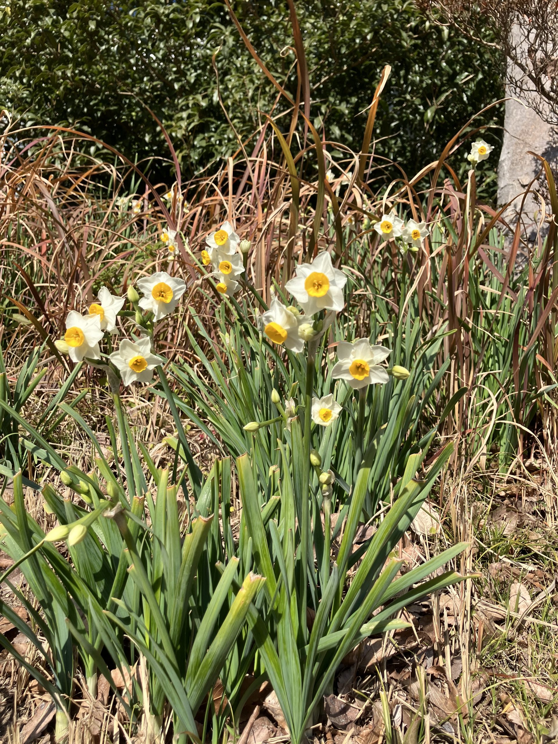 皆さん、おはようございます。 今日は緩やかな日差しがあり穏やかな日となりました。 あちらこちらで寒波に負けず”スイセン”の花を見かけます。 当館でも東側の土手に凛と気高く咲いています。