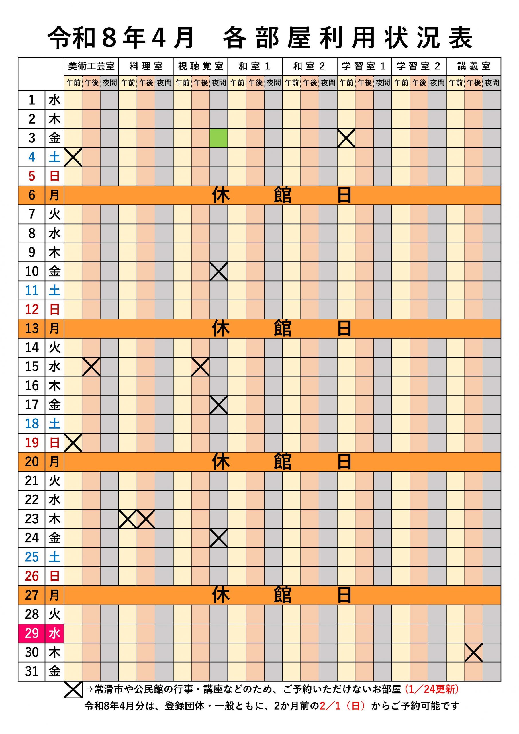 「各部屋利用状況表」に1カ所変更がありましたのでお伝えしますね。