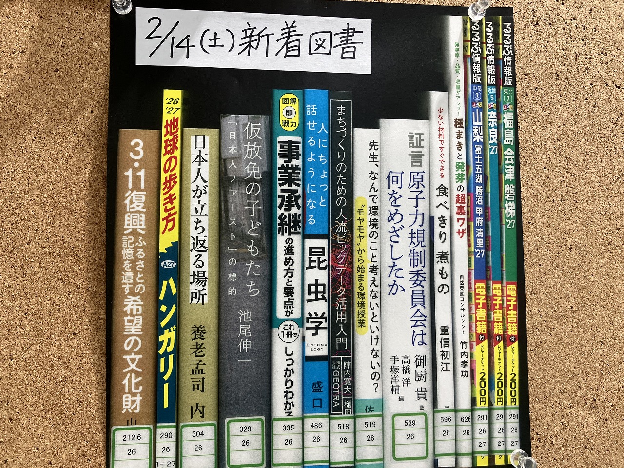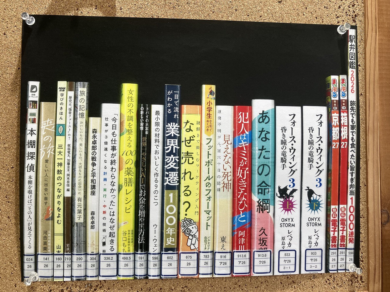 図書館さんの掲示板には、今週も新着本が紹介されています。