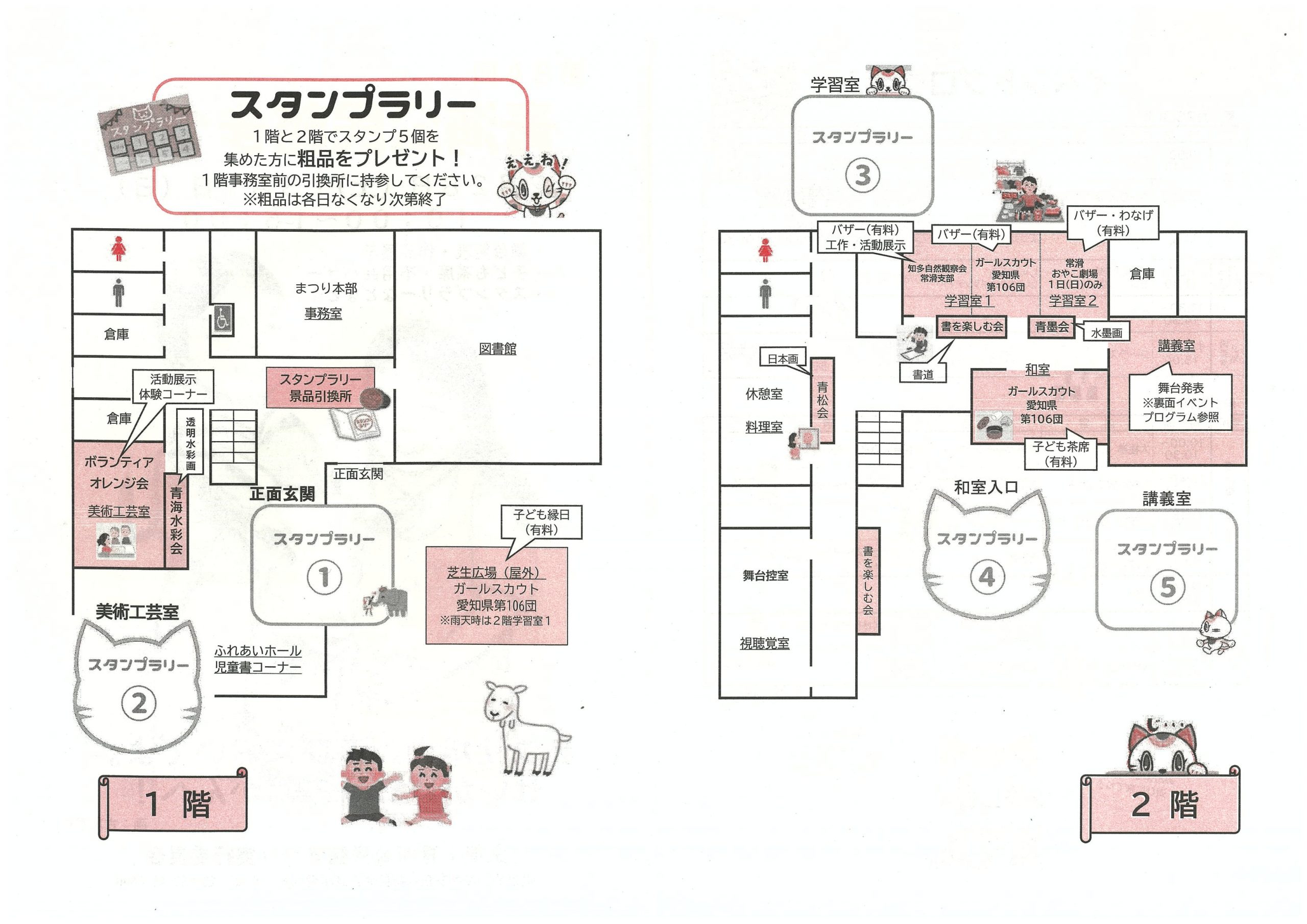 ステージイベント、力作ぞろいの作品展示、楽しい体験、バザーあり、スタンプラリーあり、ごゆっくりご観覧くださいませ。