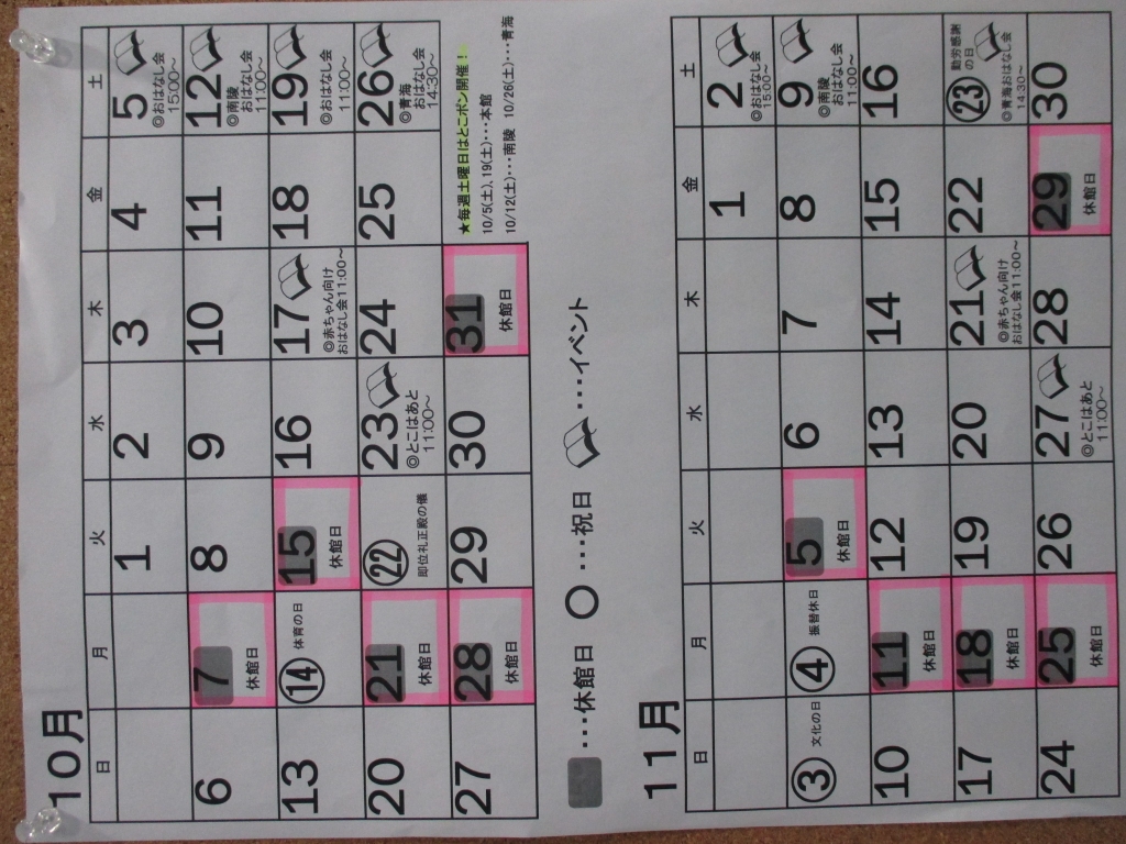 午前9時から午後9時30分まで 休館日:月曜日(祝日の場合は次に来る平日)